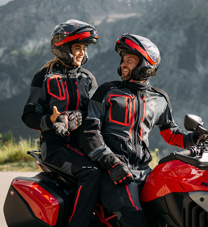 Designed by Drudi Performance and manufactured by Spidi exclusively for Ducati, the Ducati Explorer combo is a garment designed for long-distance riding. Available in men’s and women’s versions.